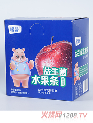 暖馨益生菌水果條系列,有草莓味、藍(lán)莓味、蘋(píng)果味、香橙味,優(yōu)選鮮果投入,真材實(shí)料有果肉。水果果汁+益生菌,營(yíng)養(yǎng)豐富味道好。
