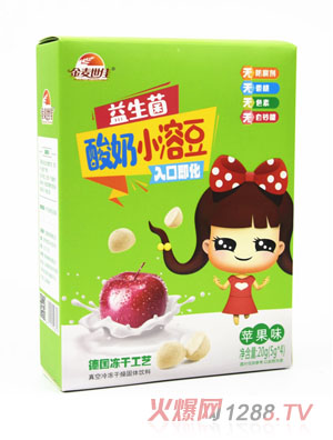 金麥世佳小溶豆,添加活性益生菌、發(fā)酵乳,入口即化,酸甜美味,有草莓味、藍莓味、蘋果味、雪梨味、原味、火龍果味、櫻桃味、蔬菜味、酸菜味等口味,挑逗寶寶味蕾。