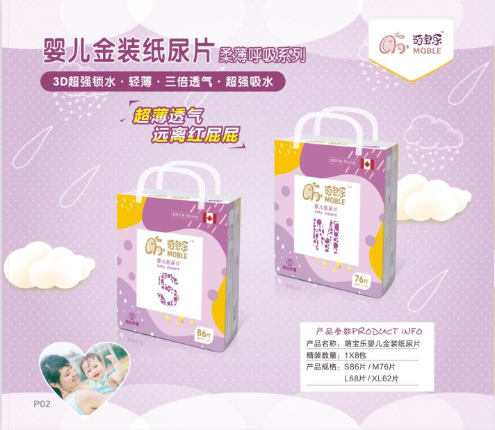 “萌寶樂”使用了健康護理型圖標,是專業(yè)用于健康護理的標識,得到專業(yè)檢驗部門的認可。它使用的材料大都是進口高分子和健康純白無印刷油墨的精選優(yōu)質熱風無紡布,讓產品擁有倍透排濕、柔潤親膚,抑菌防紅臀的特點,是值得媽媽信賴和放心的產品。