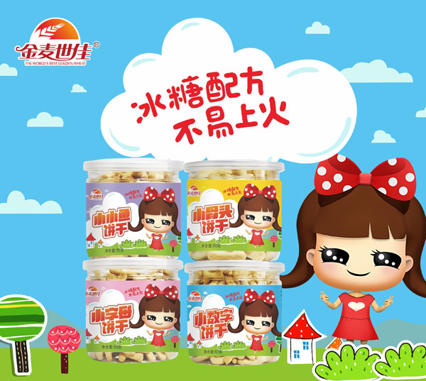 金麥世佳:用金子一樣的心,尋找營養(yǎng)與口感的完美平衡,打造屬于寶寶的零食王國,讓金麥成為世代佳話。