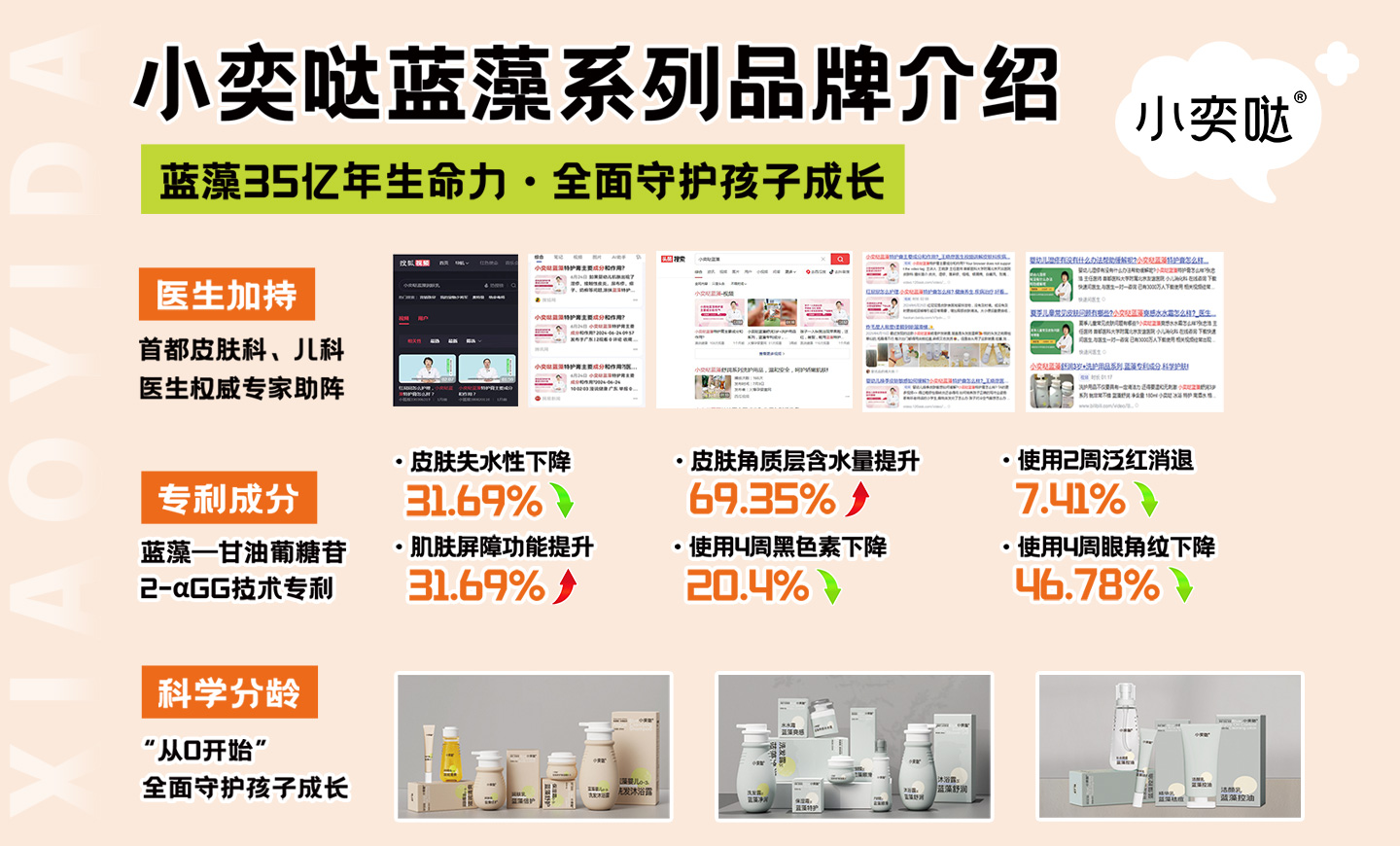 “小奕噠”是武漢達兒文生物科技有限公司旗下定位于嬰童保健與護理,擁有完全知識產(chǎn)權(quán)的品牌,該品牌產(chǎn)品由武漢達爾文設(shè)計,“小奕噠”系列產(chǎn)品以純天然植物精華為產(chǎn)品原料,充分利用各種草本植物的作用機理科學組合配方,并發(fā)揮配方中各草本植物最大功效特點,以先進的提取工藝作為原料品質(zhì)保障,結(jié)合現(xiàn)代尖端設(shè)備和先進的生產(chǎn)工藝、十萬級無菌生產(chǎn)環(huán)境及完善的GMP體系作為產(chǎn)品的質(zhì)量保證。