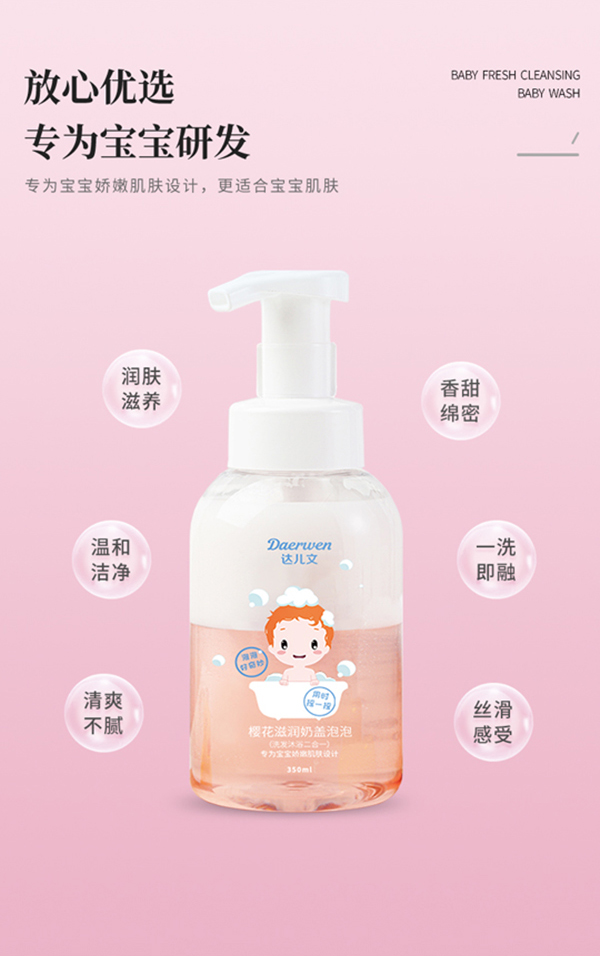 武漢達兒文生物科技有限公司是一家專門致力于孕嬰童產(chǎn)品的公司,旗下的達兒文來源正規(guī),沒有中間層層剝利環(huán)節(jié),絕對的降價不降質(zhì),是廣大代理商朋友的理想選擇。尤其是這款達兒文櫻花滋潤奶蓋泡泡,更是值得青睞!