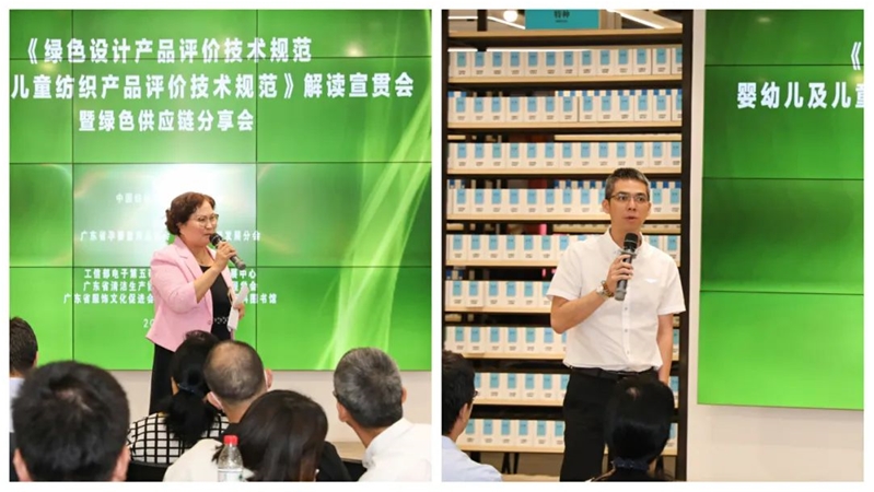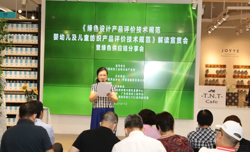 會上邀請了工業(yè)和信息化部電子第五研究所姜濤主任作了《綠色設(shè)計(jì)產(chǎn)品及其評價(jià)技術(shù)規(guī)范編制意義》主題發(fā)言,闡述了制定嬰幼兒童裝綠標(biāo)的背景、意義,綠色設(shè)計(jì)對產(chǎn)品全生命周期的影響,通過對產(chǎn)品標(biāo)準(zhǔn)評價(jià)可以將市場產(chǎn)品優(yōu)劣識別出來,企業(yè)通過評價(jià)發(fā)現(xiàn)不足改進(jìn)提高,接下來要開展綠色童裝產(chǎn)品評定認(rèn)證的工作。