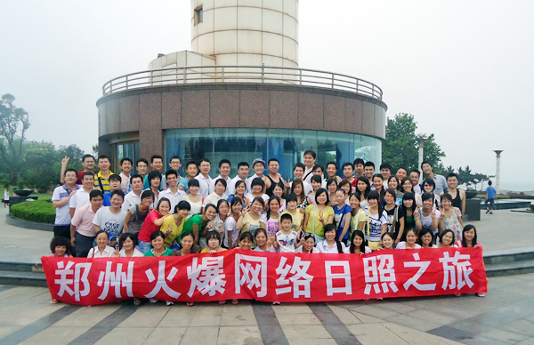 火爆網(wǎng)絡(luò)全體員工在燈塔前的合影留念