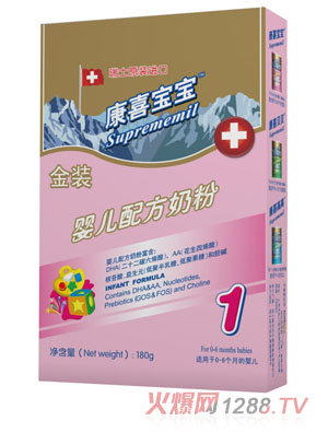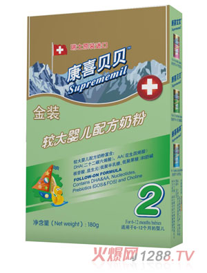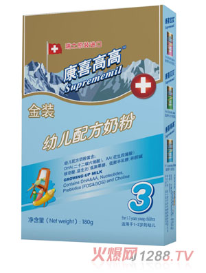 Suprememil系列配方奶粉(康喜bao--baoSuprememil 1、康喜貝貝Suprememil 2、康喜高高Suprememil 3),是由瑞士赫爾達夫營養(yǎng)食品有限公司生產(chǎn),由欣特峽商貿(mào)(上海)有限公司總經(jīng)銷。欣特峽商貿(mào)(上海)有限公司在食品、保健品、藥品、醫(yī)療儀器等領域提供采購、品牌營銷、物流、經(jīng)銷等一體化服務。